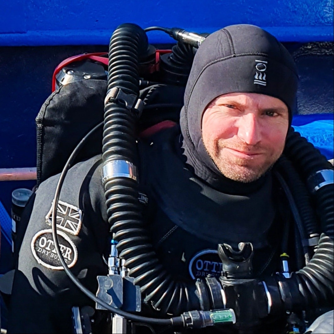 Tim started diving in 1990 while studying Marine Biology and Oceanography, becoming a BSAC Advanced Diver, followed by MSc and HSE Part IV qualifications. Subsequent diving projects included environmental survey, scientific expeditions, aquarium diving and media projects, harnessing an enthusiasm for communicating marine science. His personal diving includes many countries, wrecks and reefs, but remains focused on temperate seas. Tim began technical diving in 1999, taking part in the 990 Bullring expedition as a videographer. He is co-owner of IANTD UK and an active IANTD IT on both OC and CC, writing Self Sufficient, Photogrammetry, and Scientific diving manuals. He is also a test diver and factory training manager for the RedBare CCR, with additional ratings on Explorer and MCM100.