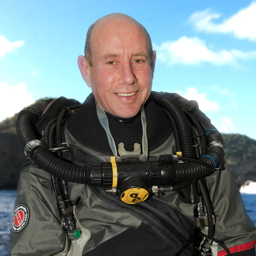 He discovered tech diving in 1997 and as funds allowed dived in the UK and abroad, culminating in learning to cave dive in 2014, which now is his favourite way of diving.